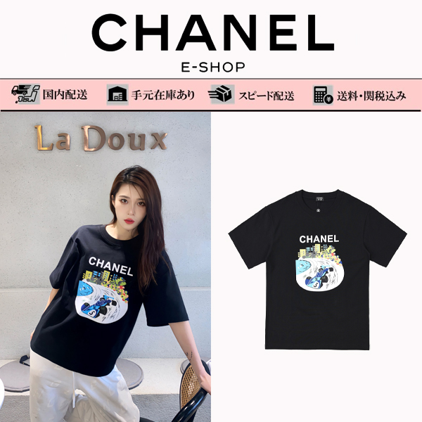 Chanel /シャネル23 ssシティレースプリント半袖Tシャツ