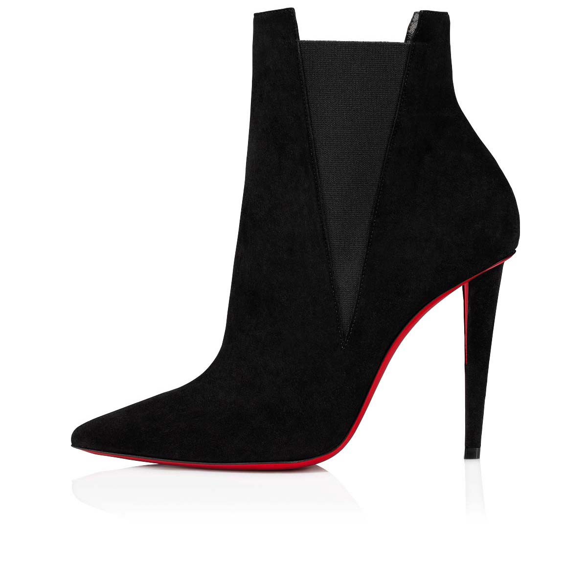 Set on 100mm stiletto heels with the label's signature scarlet soles, Christian Louboutin's Astribooty ankle boots are made from suede and have elasticated sides.
