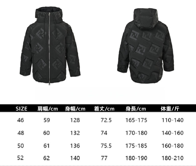 FENDI フェンディのFFプリントナイロンフーデッド ダウンジャケットは、ブラックを基調としたシンプルかつ洗練されたデザインです。 象徴的なFFプリントが全体に施され、高級感あふれる外観を呈しています。 素材にはカスタム航空級75Dロックウォームナイロンを採用し、優れた耐久性と保温性を実現しています。 内部には新国标90ホワイトダックダウンを充填しており、極めて高い保温力を誇ります。 フロントにはシルバーカラーのファスナーが配され、フード部分にはブラックの引き紐が付属しており、着用感を自由に調節できます。 ルーズフィットの版型で、快適な着用感を提供します。 高度な製法により、精密な裁断と縫製が施され、品質とデザインの両立を実現しています。