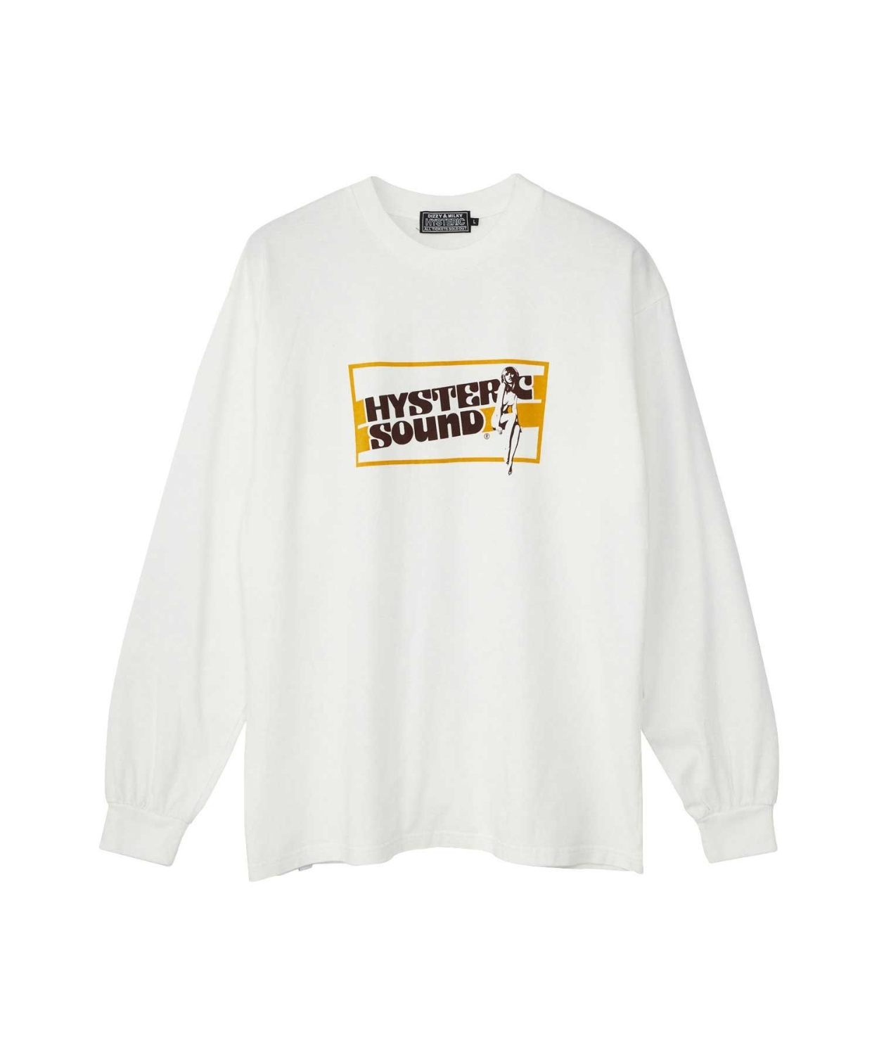 80年代に設立されたオーディオメーカーのプロモーショングッズをイメージしたグラフィックを配した長袖Tシャツ。