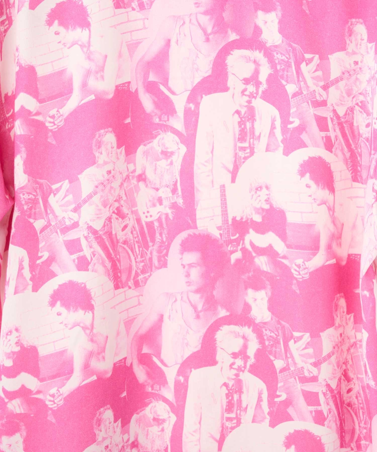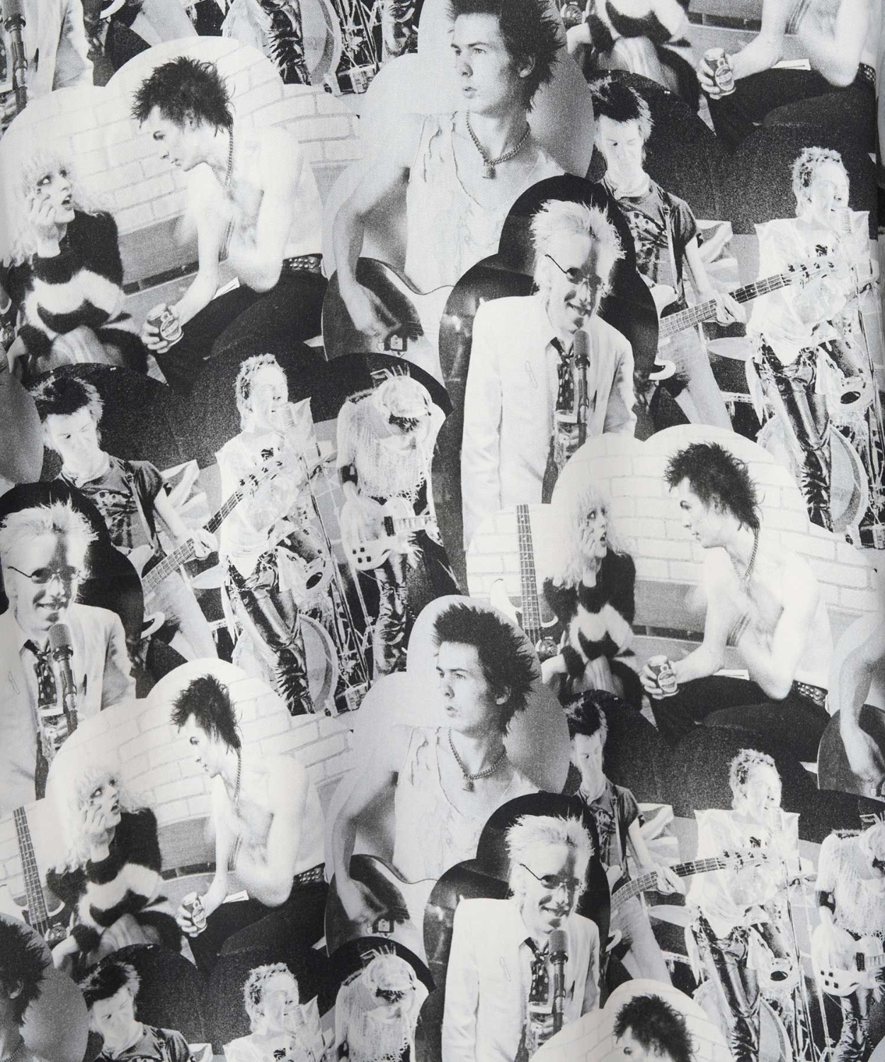音楽シーンに密接に関わるデニス・モリスの、1977年セックス・ピストルズの全英ツアーに同行した際のショットをコラージュしたもの。絶頂期を迎えたピストルズは翌1978年にジョニー・ロットンの脱退を機に解散し、とても貴重なショットが詰め込まれた総柄デザイン。