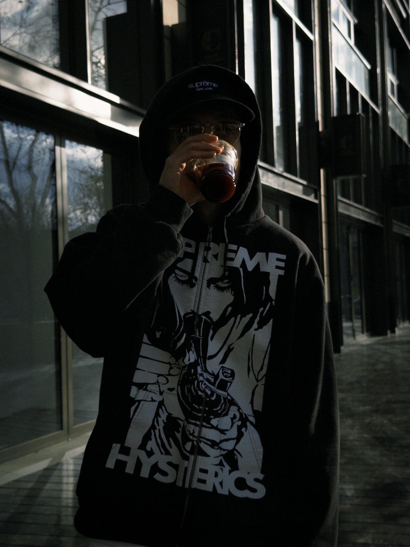 シュプリームx ヒステリック グラマー サーマル ラインド ジップアップ フード スウェットシャツ ブラック - 24FW